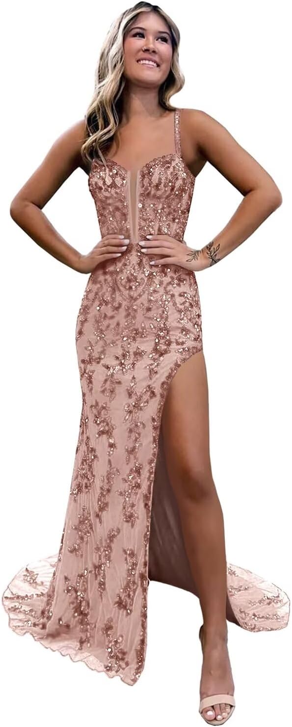 Welcome to benoui! we provide high-quality dresses just buy with confidence and we will be pleased to serve you.More dresses for other occasions will follow, such as the wedding party dresses, bridesmaid dresses, evening dress, prom party gowns and other special occasion dresses Product:Sparkly Sequin Tulle Mermaid Prom Dress Long for Women Spaghetti Straps Corset Backless Formal Evening Party Gowns Fabric:Sparkly Sequin,Glitter Sleeve:Sleeveless Back Design:Backless Neck Style: V Neck,Sweetheart Size Choose:If the sizes we provide don't have the right size for you, you can let us know the following information and we will do a free customization for you Bust _____ inch or___cm Waist _____ inch or___cm Hips _____ inch or___cm Height(without in shoes)____inch or___cm Hollow to floor(shoulder to feet without in shoes)___inch or___cm Height of Heel____inch or___cm
